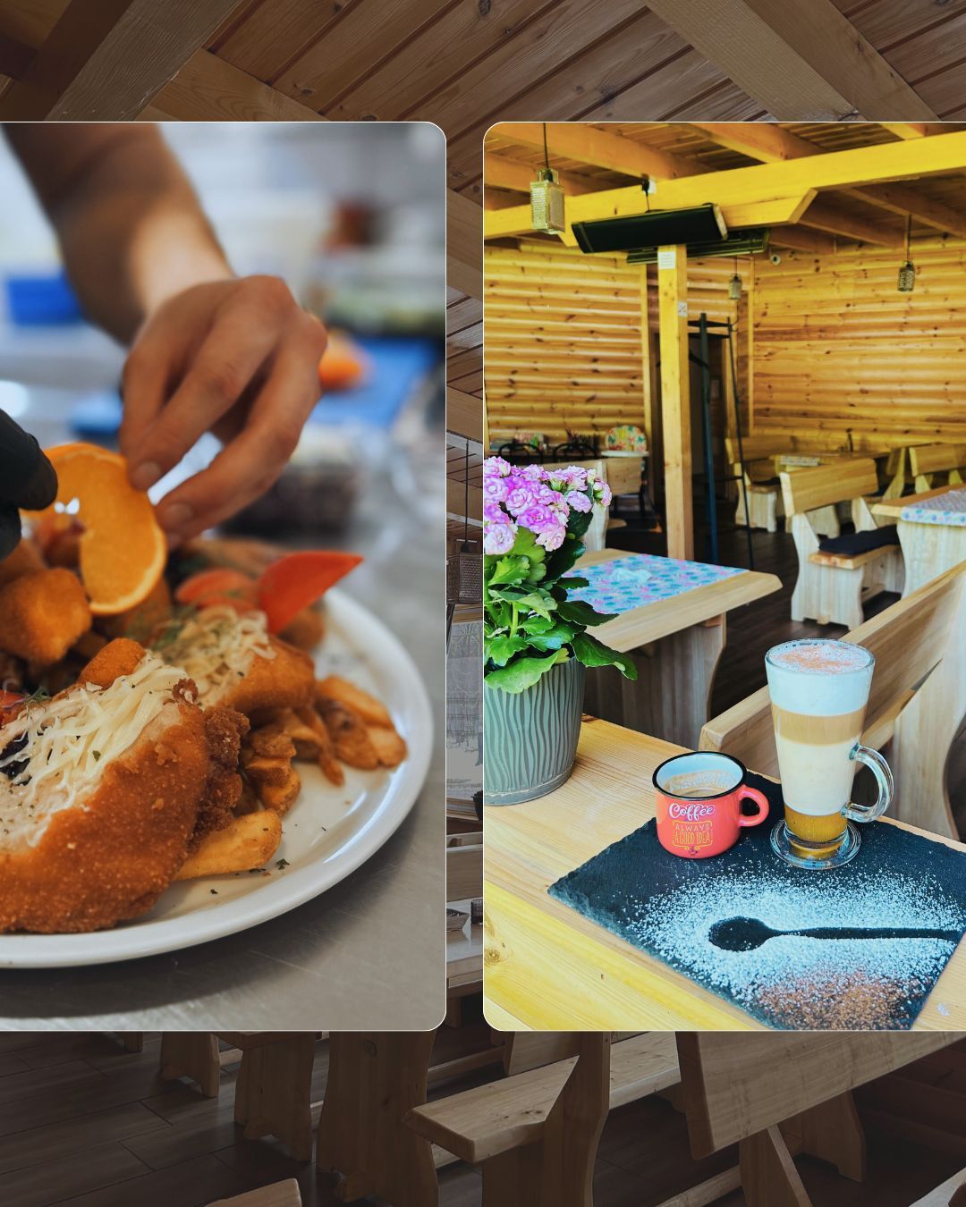 Ételeinket mindig frissen készítjük, kizárólag válogatott, minőségi alapanyagokból. Hiszünk benne, hogy az őszinte ízek és a gondos munka adják azt az élményt, amit örömmel osztunk meg minden vendégünkkel.